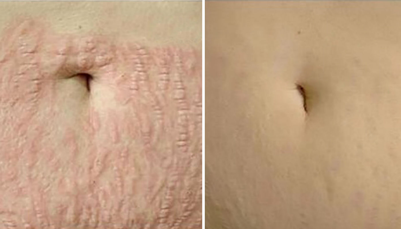 pele para cobrir as linhas brancas, roxas ou avermelhadas das