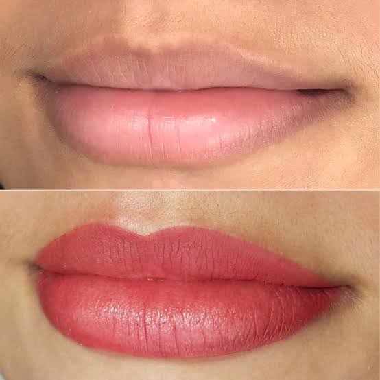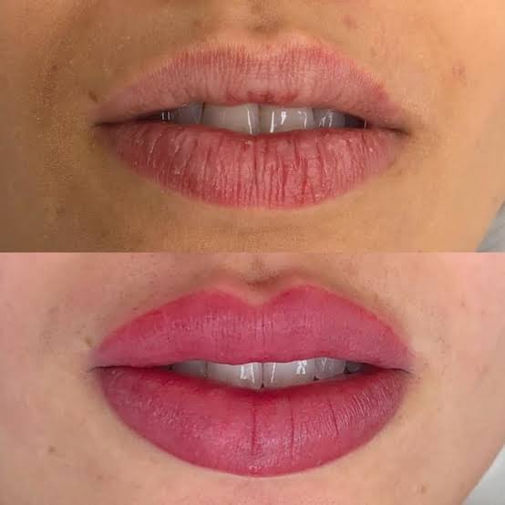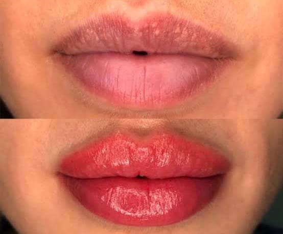 A aparência dos lábios também fica mais volumosa, sendo um efeito